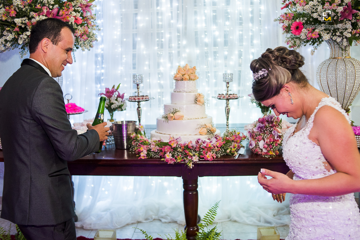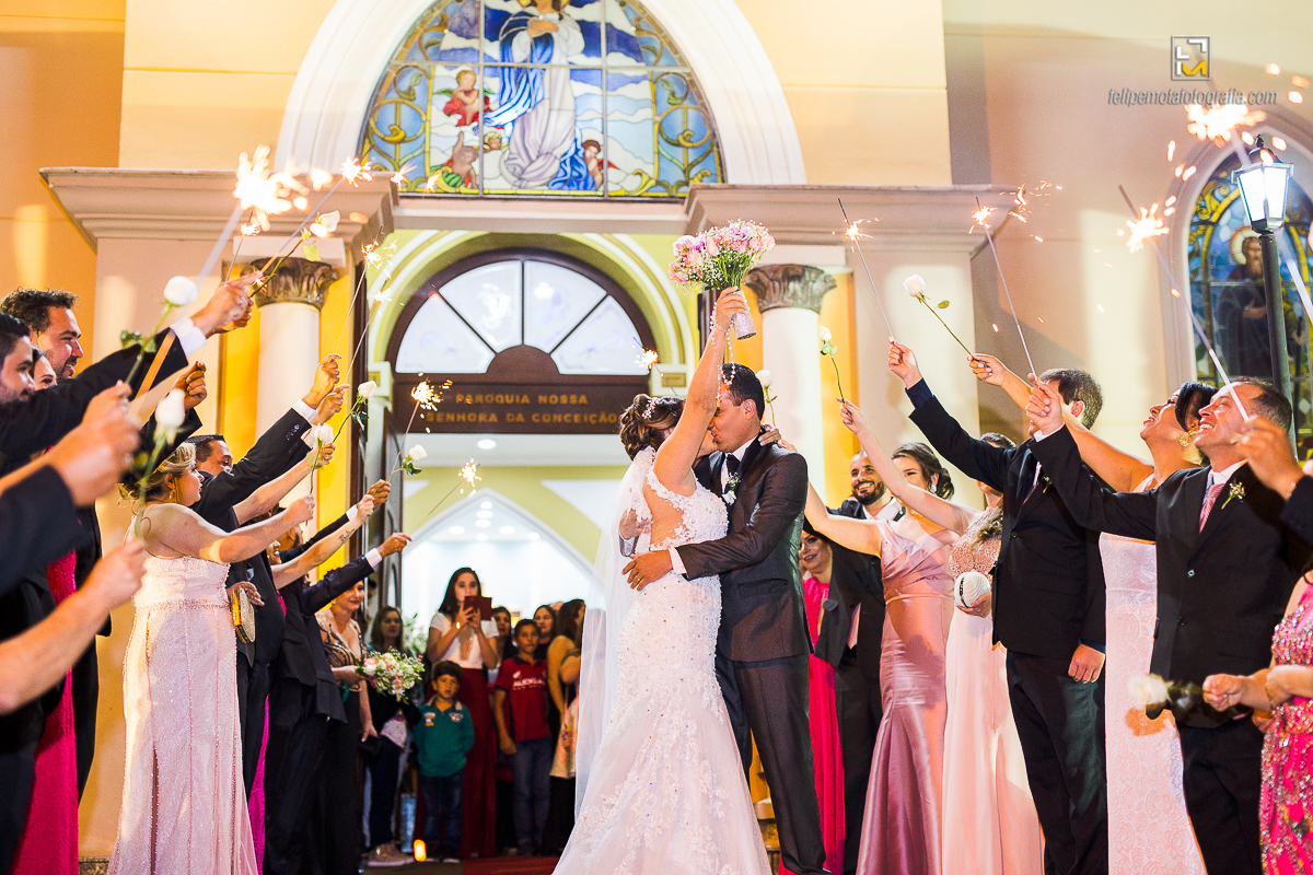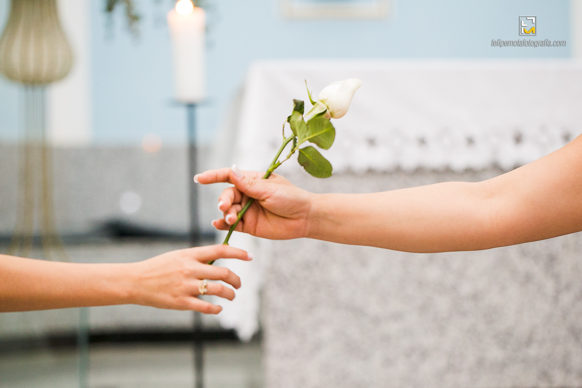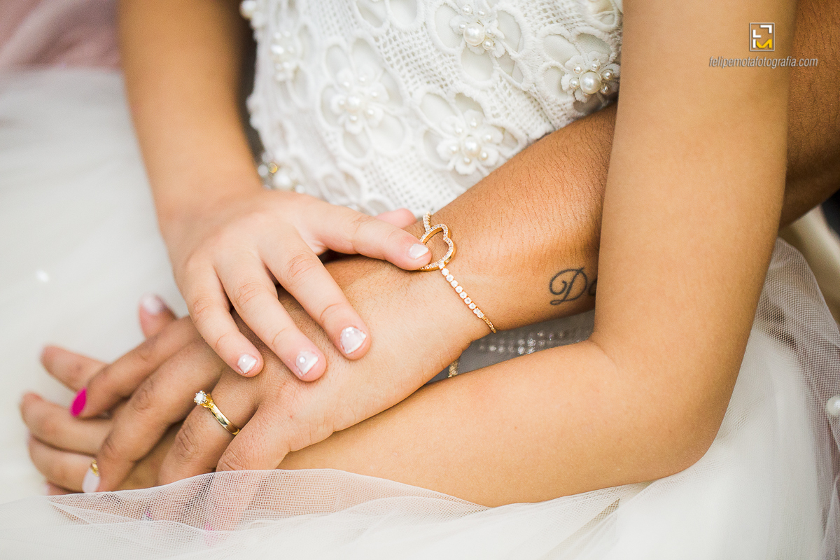 Na sexta o tempo virou, choveu muito, fez frio e o sábado amanheceu do mesmo jeito. Mas foi chegando o final da tarde e aproximando o horário do casamento, o céu começou a limpar e sol apareceu. Em cada cultura a chuva tem um significado diferente, para alguns ela vem pra trazer alegrias, para outros eleva o humor, ela também é conhecida por purificar a alma, dar esperanças, além de trazer vida. Como em tudo deve haver equilíbrio, o sol por sua vez apareceu para iluminar e aquecer o dia, assim deve ser a vida de um casal, em equilíbrio, sendo o sol e a chuva um para o outro.