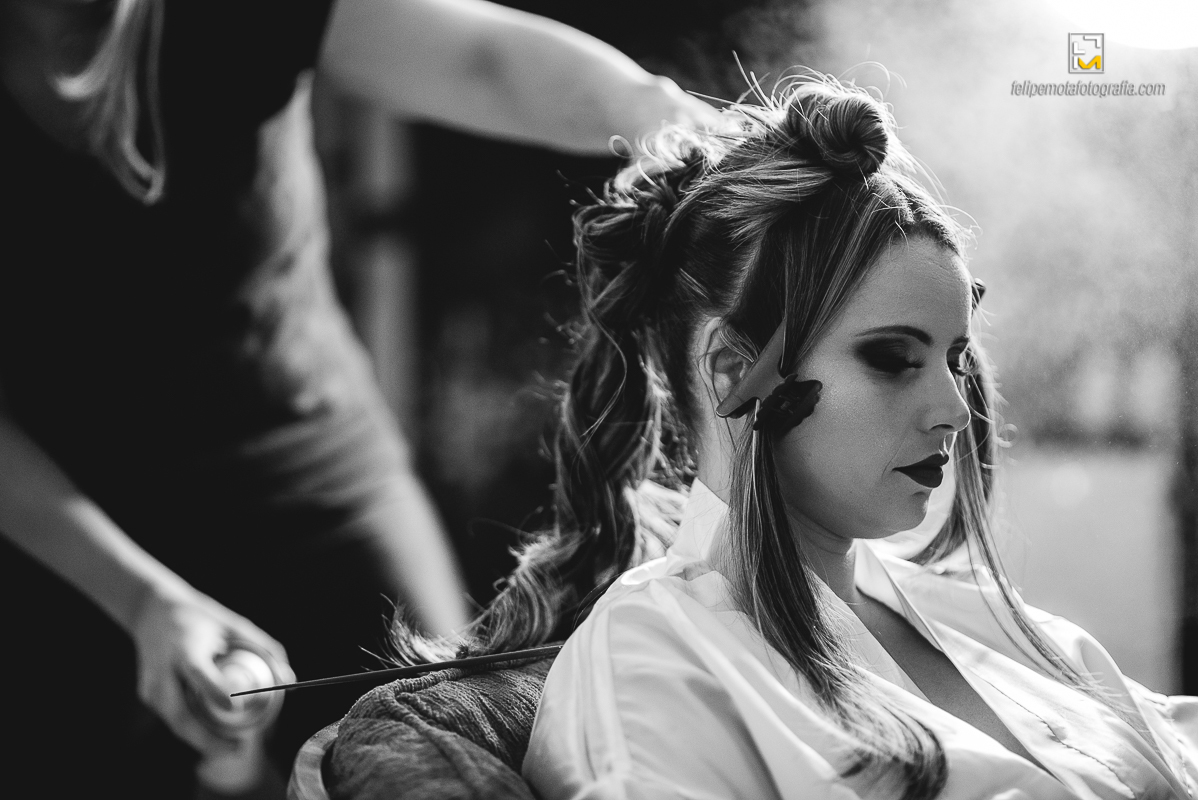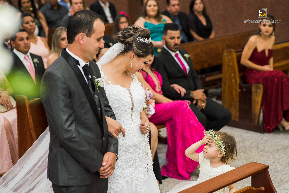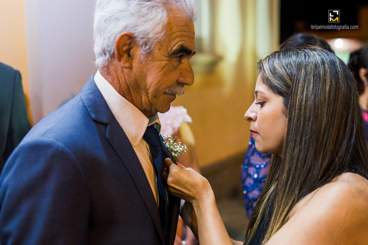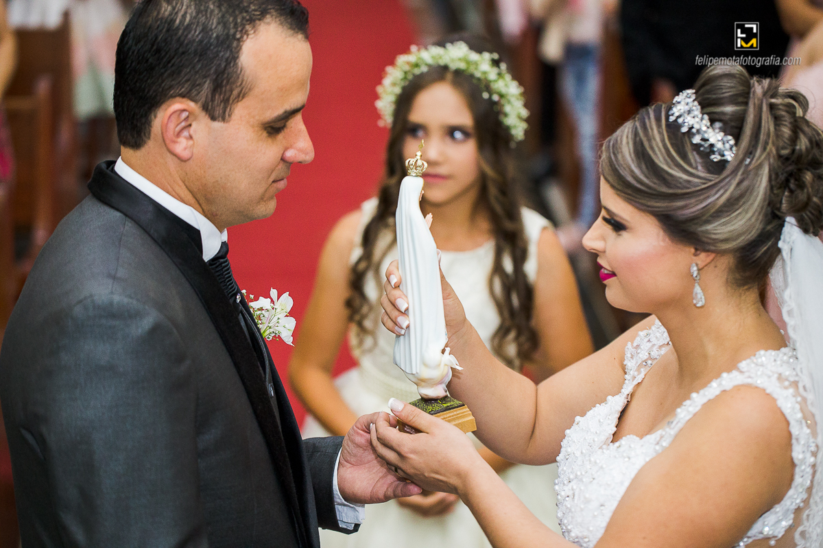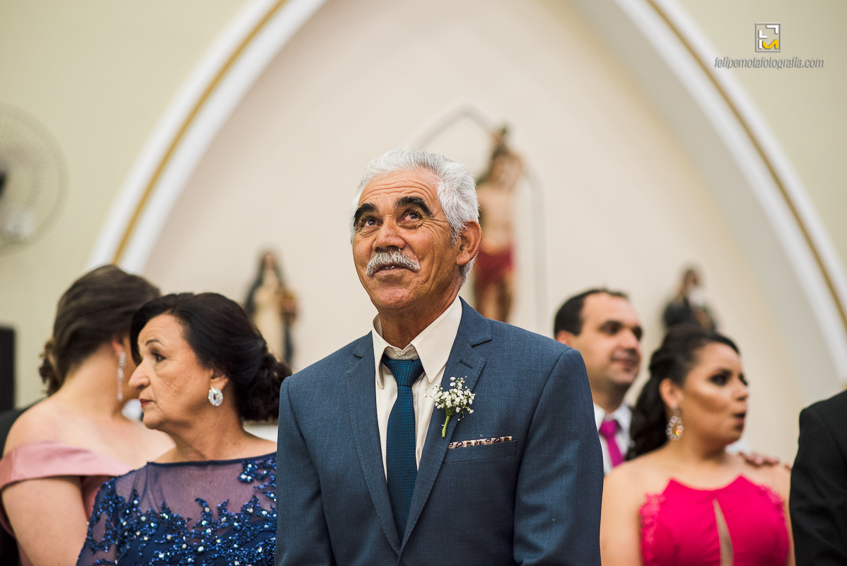Na sexta o tempo virou, choveu muito, fez frio e o sábado amanheceu do mesmo jeito. Mas foi chegando o final da tarde e aproximando o horário do casamento, o céu começou a limpar e sol apareceu. Em cada cultura a chuva tem um significado diferente, para alguns ela vem pra trazer alegrias, para outros eleva o humor, ela também é conhecida por purificar a alma, dar esperanças, além de trazer vida. Como em tudo deve haver equilíbrio, o sol por sua vez apareceu para iluminar e aquecer o dia, assim deve ser a vida de um casal, em equilíbrio, sendo o sol e a chuva um para o outro.