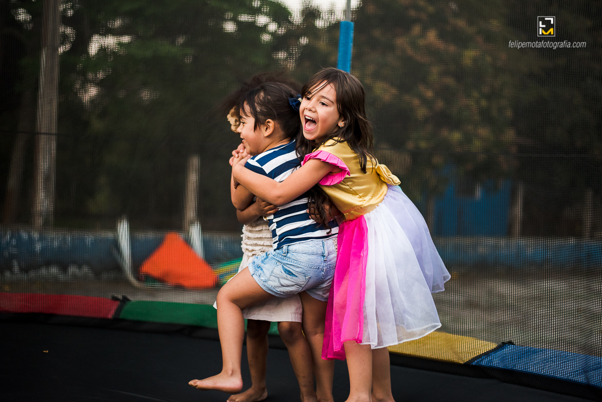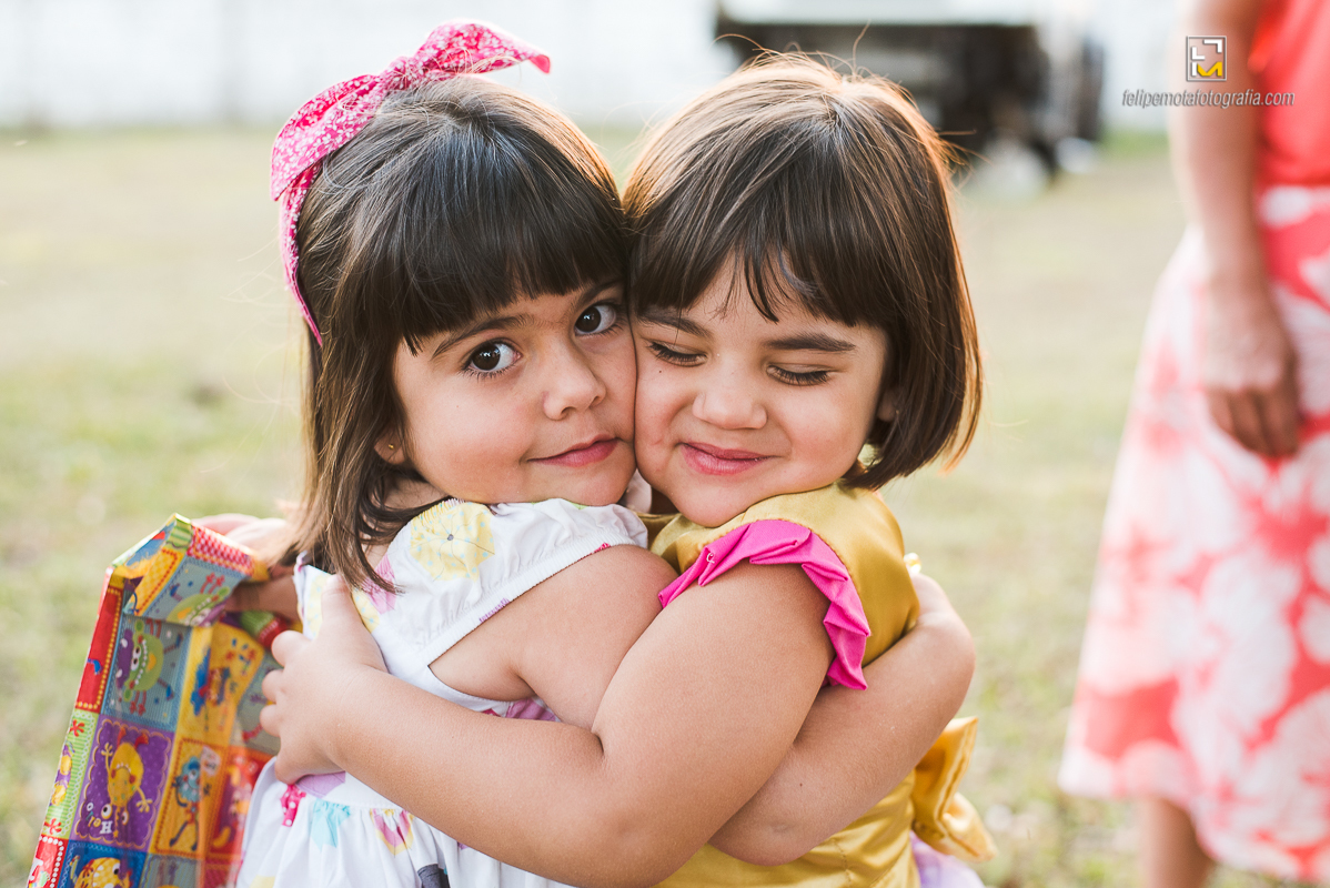 As irmãs Luisa e Helena comemoraram o aniversário delas juntas, com muitos amiguinhos, bagunça, brincadeiras, pé no chão e muita diversão como todo aniversário de criança deve ser.